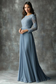 Dusty Blue Appliques Sheath Boat Neck Mother of The Bride Dress