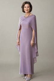 Sheath Chiffon Lilac Mother of the Bride Dress with Cape Sleeves
