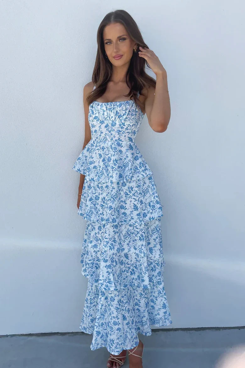 A-Line Empire Sleeveless Floral Appliques Tiered Party Prom Dress