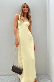 Bateau Spaghetti Straps Satin A-Line Long Party Prom Dress