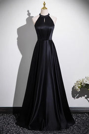 Black Satin Long Prom Dress, Black A-Line Evening Party Dress