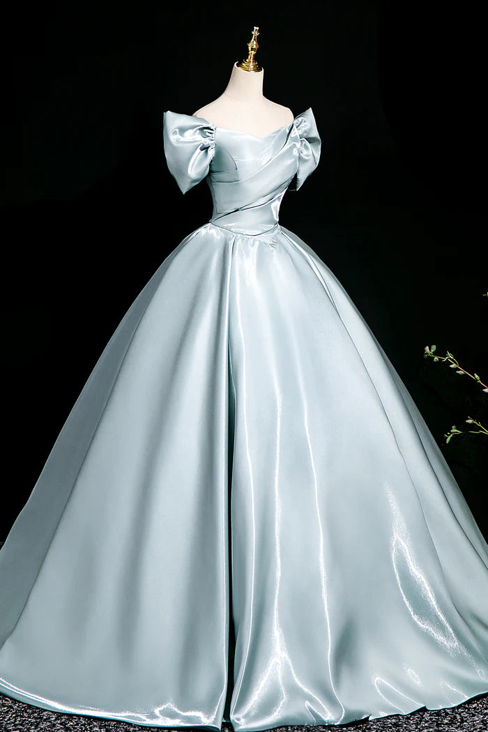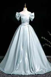 Blue Satin Long Prom Dress, A-Line Off the Shoulder Evening Party Dress