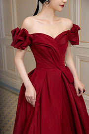 Burgundy Satin Long Prom Dress, A-Line Evening Party Dress - US 2 / UK 6 / EU 32