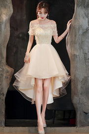 Champagne Tulle High Low Prom Dresses, A-Line Party Dresses