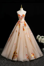 Champagne Tulle Sequins Long Prom Dress, Beautiful A-Line Evening Party Dress