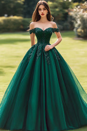 Dark Green Ball Gown Long Princess Quinceanera Dress with Appliques
