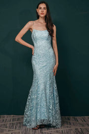 Light Blue Applique Lace Full Of Charm Mermaid Dress