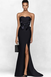 Strapless Mermaid Black Long Celebrity Dress with Slit