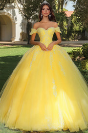 Yellow Ball Gown Off the Shoulder Long Tulle Quinceanera Dress with Lace