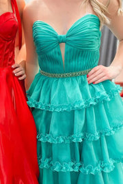 A-Line Strapless Keyhole Empire-Waist Layered Prom Dress