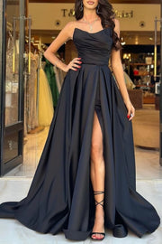 Black A-Line Strapless Pleated Top Satin Full Of Charm Prom Dress