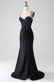 Black Mermaid Spaghetti Straps Long Corset Full Of Charm Prom Dress