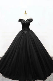 Black Tulle Beaded Long Ball Gown, A-Line Off the Shoulder Evening Formal Gown