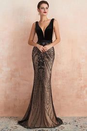 Black V-neck Sleeveless Lace Appropriate Color Matching Prom Dresses