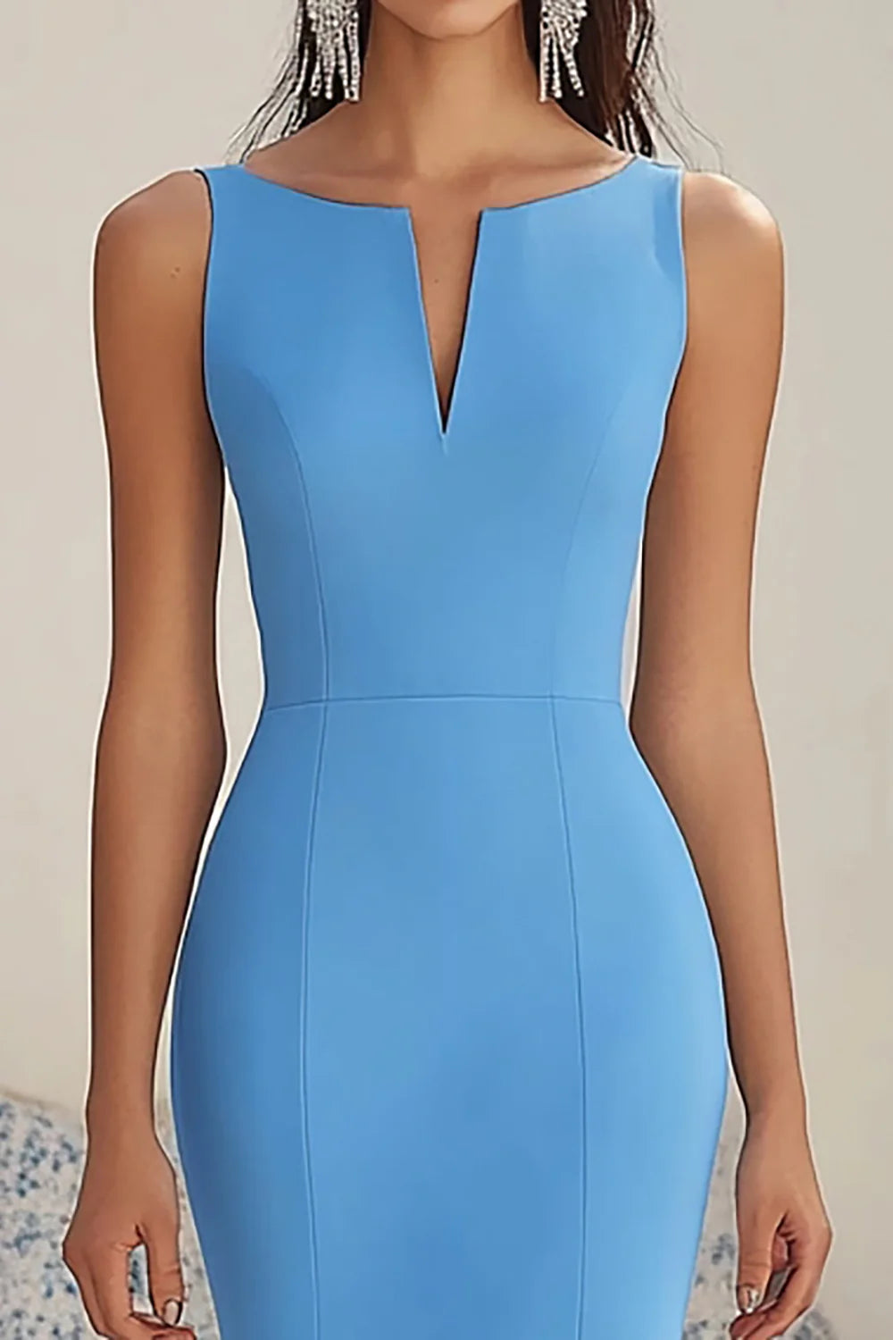 Blue Mermaid Chiffon Sleeveless High-Low Formal Dress