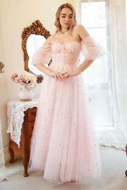 Blush A-Line Tulle Shot Sleeve Full Of Charm Prom Dress