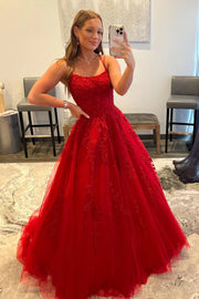 Cute Ball Gown Sweetheart Red Tulle Lace Prom Dresses