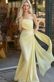Daffodil Sheath Chiffon Long Cut-Out Prom Dress with Sash