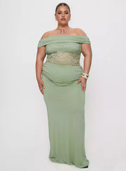 LANQI's elegant plus size off shoulder lace pleated details with lining and foldable chest Prom Dresses. This dress features a draped fabric, a shoulder length, lace stitching, and a backless design paired with a long silhouette, showcasing a gentle and elegant style. The fabric is highly inclusive and has a smooth texture. The one shoulder cut accentuates the shoulder and neck lines, while the lace stitching enhances the delicate feeling. The slim fit skirt fits the body and naturally displays temperament, making it suitable for light luxury dinners, girlfriends' gatherings, and other occasions. It is a high-quality choice to showcase fashion taste and gentle style.