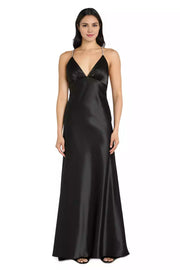 Exquisite black satin long style low hanging back V-neck exquisite and elegant Prom Dresses - US 2 / UK 6 / EU 32