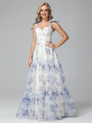 Floral Print Lace Up Floor Length Full Of Charm Prom Dress