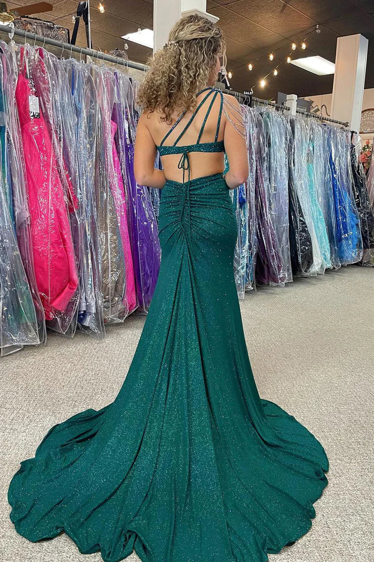 Gorgeous Mermaid One Shoulder Dark Green Unique Design Prom Dresses