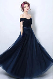 imple Pleated Dark Navy Blue Full Of Charm Prom Dress