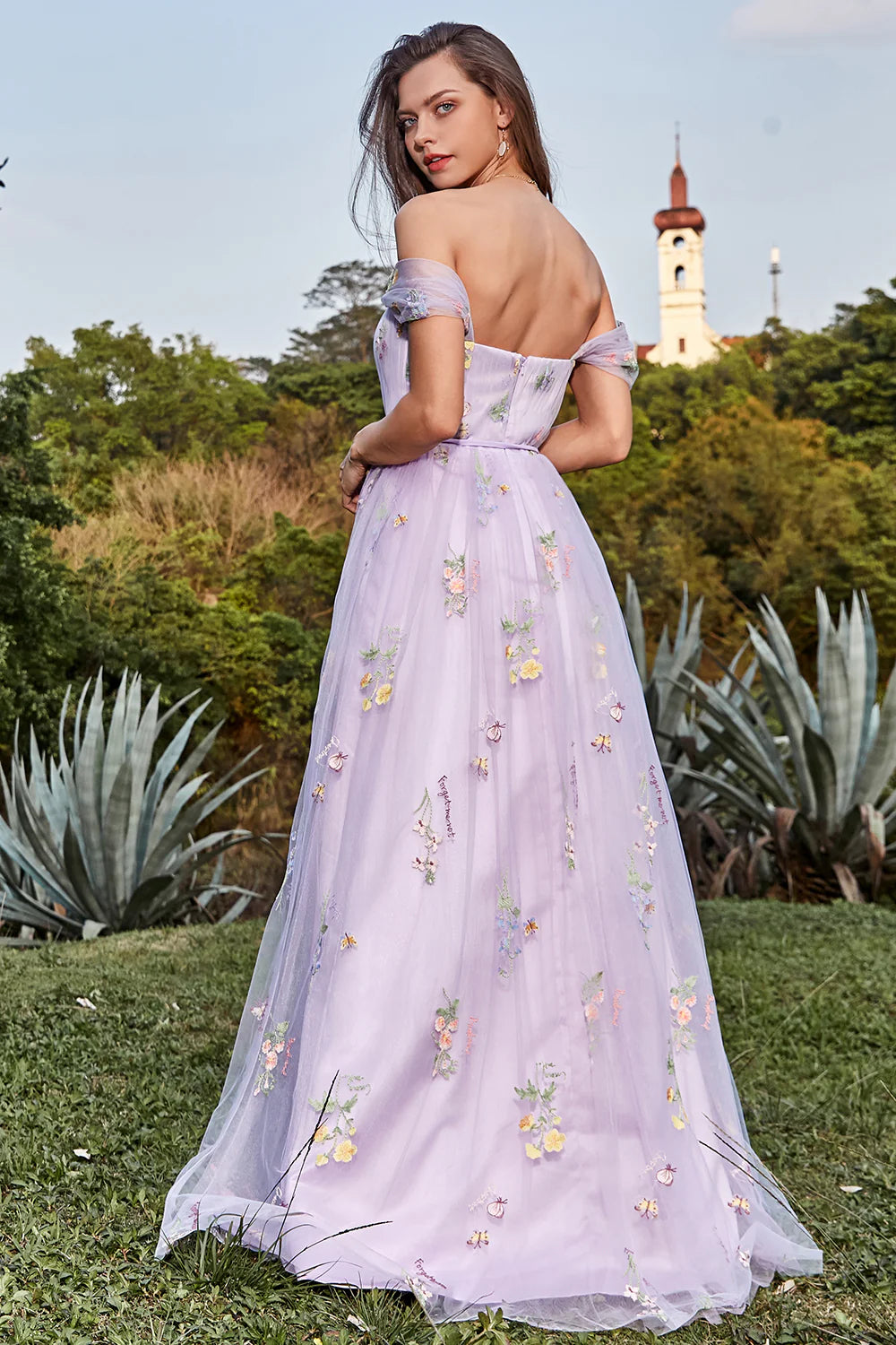 Lavender A Line Off The Shoulder Tulle Formal Dress With Embroidery