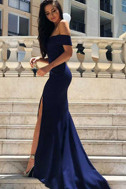 Mermaid Off-the-Shoulder Sweep Train Split-Side Satin Full Of Charm Prom Dress