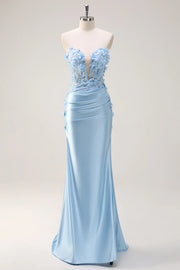 Sky Blue Sheath Floral Sweetheart Long Full Of Charm Prom Dress