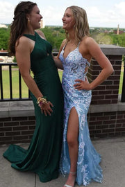 Spaghetti Straps V-Neck Appliques Sleeveless Formal Prom Dress