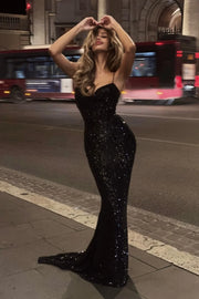Sparkly Mermaid Spaghetti Straps Red Sequins Long Prom Dress