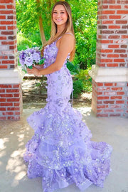 Stunning V-Neck Spaghetti Straps Appliques Mermaid Prom Dress