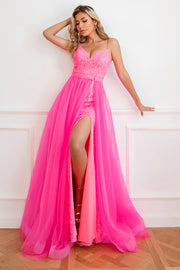 Two Piece Spaghetti Straps Fuchsia Prom Dress with Split Front - US 2 / UK 6 / EU 32