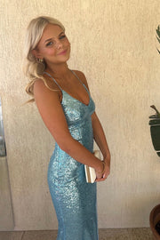 V-neck Mint Sequin Mermaid Long Unique Design Full Of Charm Prom Dresses - US 2 / UK 6 / EU 32