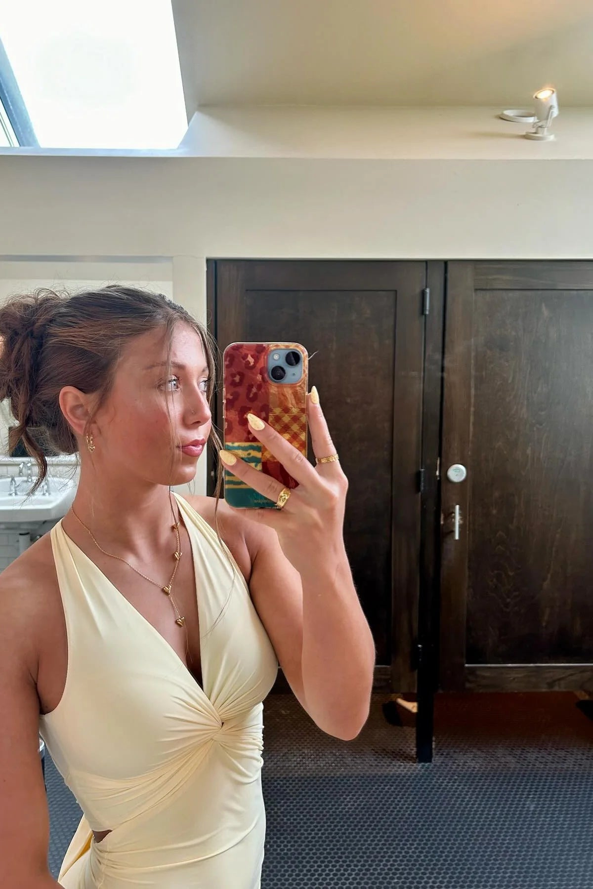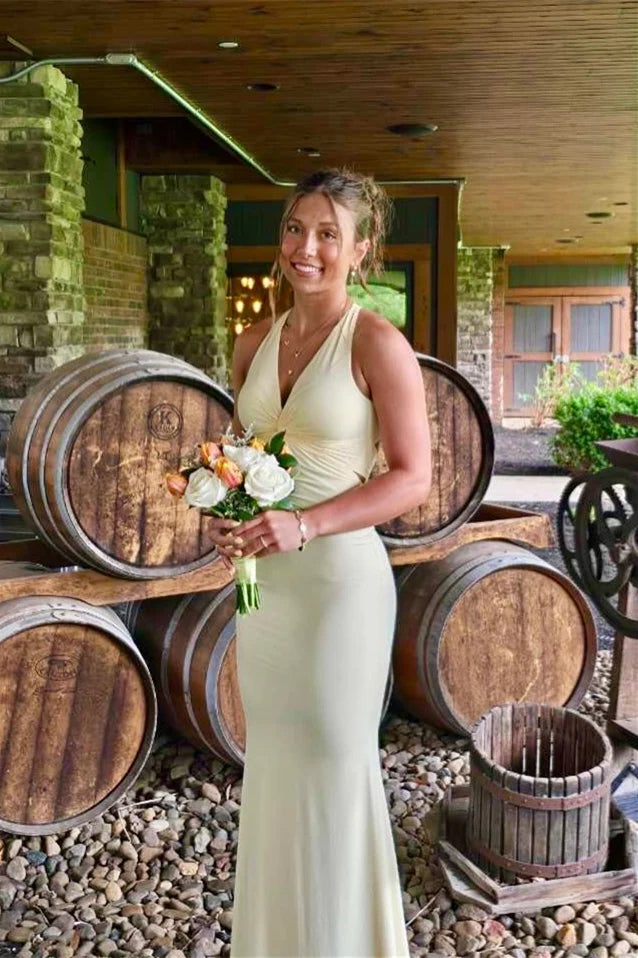 V-neck Yellow Criss-cross Back Long Unique Design Full Of Charm Prom Dresses