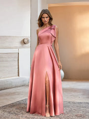 Watermelon Coloured Prom Dresses Elegant One Shoulder Bowknot A Line Prom Dresses