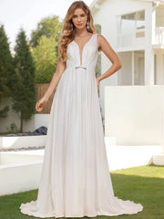 A-Line/Princess V-Neck Sleeveless Formal Ruched Retract Your Waist Wedding Dresses - US 2 / UK 6 / EU 32