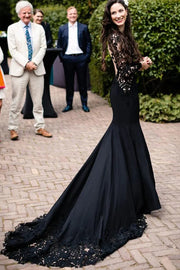 Mermaid Floral Black Wedding Dress Long Sleeve Wedding Gown