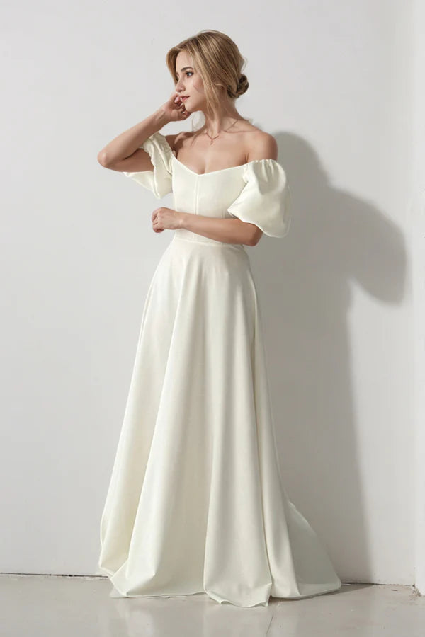 Off Shoulder A-line Modest Wedding Dress Ivory Simple Wedding Dress