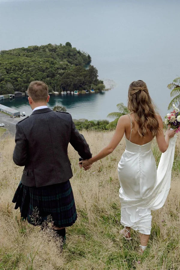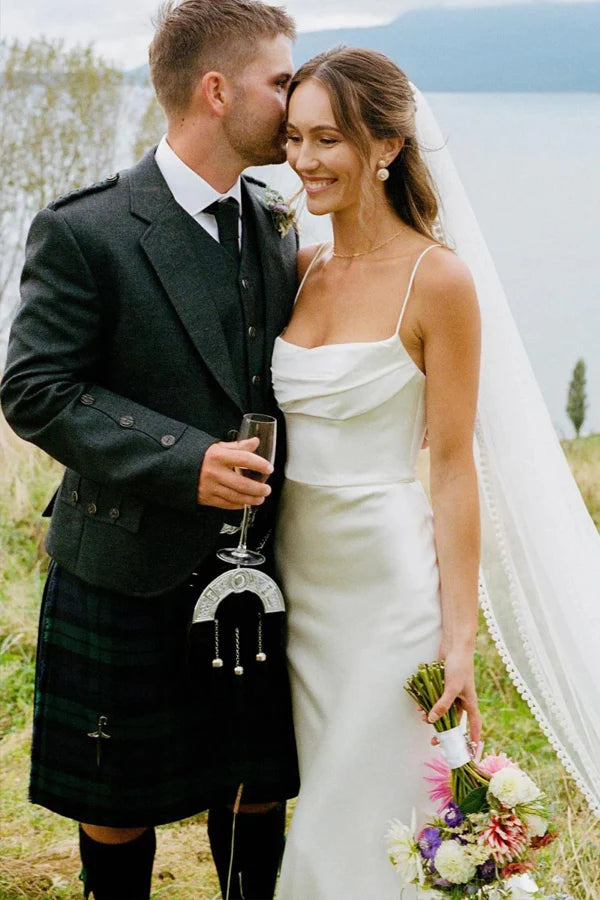 Simple Mermaid Spaghetti Straps Ivory Wedding Dress Bridal Dress