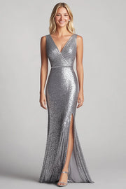 Silver V-Neck Mermaid Long Full Of Charm Formal Dress - US 2 / UK 6 / EU 32
