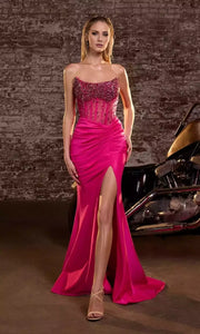 LANQI's stunning bead embellished tight fitting off shoulder long see through corset with side slit Prom Dresses. This evening gown is made of satin material, with a strapless design and full diamond decoration, showcasing elegance and luxury. The high slit design adds a charming touch, and the slim fish tail design combined with the trailing design is suitable for formal occasions such as socialite banquets and red carpet events. It is an excellent choice to showcase noble temperament and good figure.